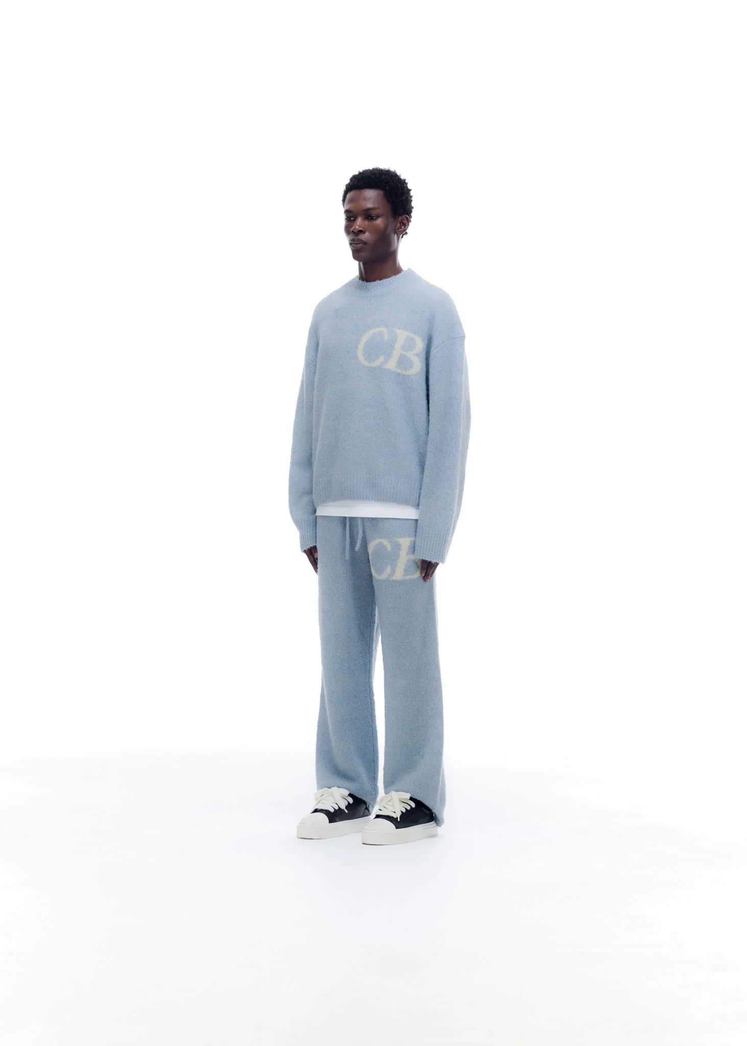 Our ultra soft merino knitted sweatpants have been knitted with a textured boucle yarn in an oversized silhouette with a loose waistband perfect for layering in winter. They also feature our CB logo knitted into the garment using a traditional intarsia technique.