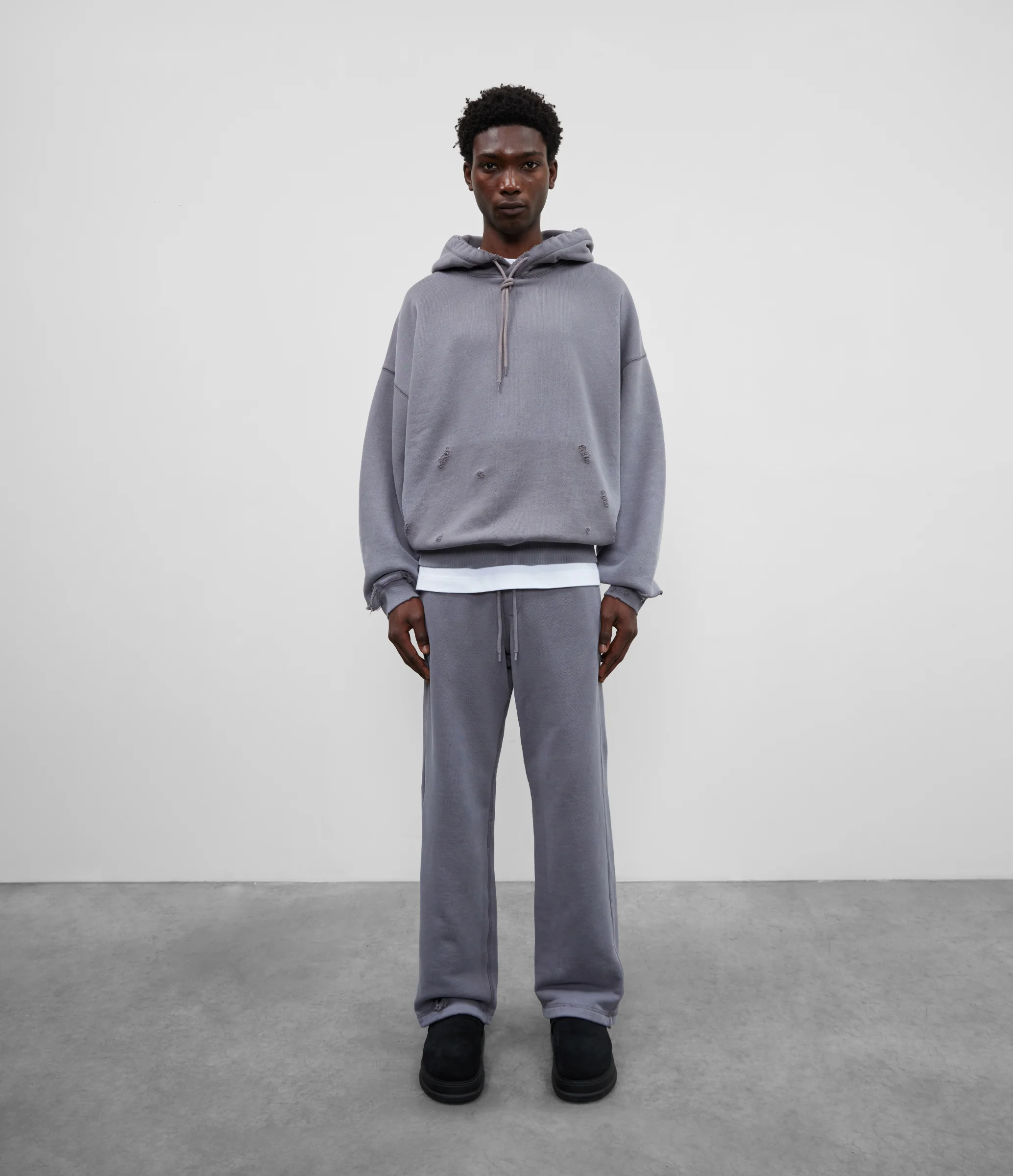 The pocket fade hoodie, a brand new hoodie for SS24. We’ve developed a brand new 500gsm half brushed American fleece for this that’s heavy in weight yet has a luxury drape. We have heavily washed this then removed the pocket to reveal its darker unwashed silhouette. The distressing has been done by hand mimicking my dad’s original CB hoodie from 8 years ago. Â