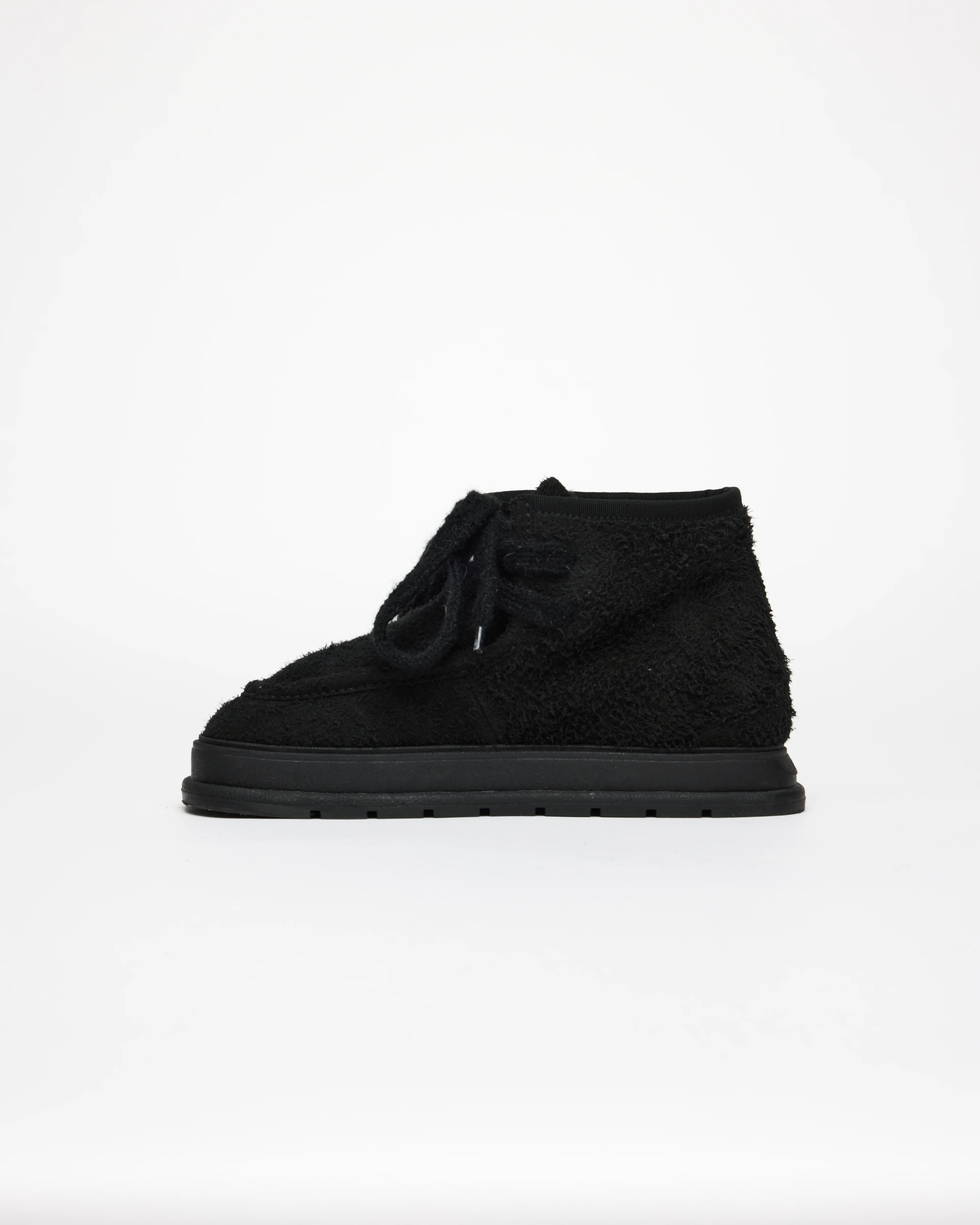 Introducing the CB Moccasin Boot. A contemporary / oversized take on the classic ‘apron’ style toe box silhouette. We’ve cut the upper from a hand brushed Italian suede and lined it with a plush high pile shearling. The rubber outsole seamlessly blends with the upper to accentuate the stance of the silhouette, with a pronounced tread and alternate "Cole" / "Buxton" debossed on the rear heel.
